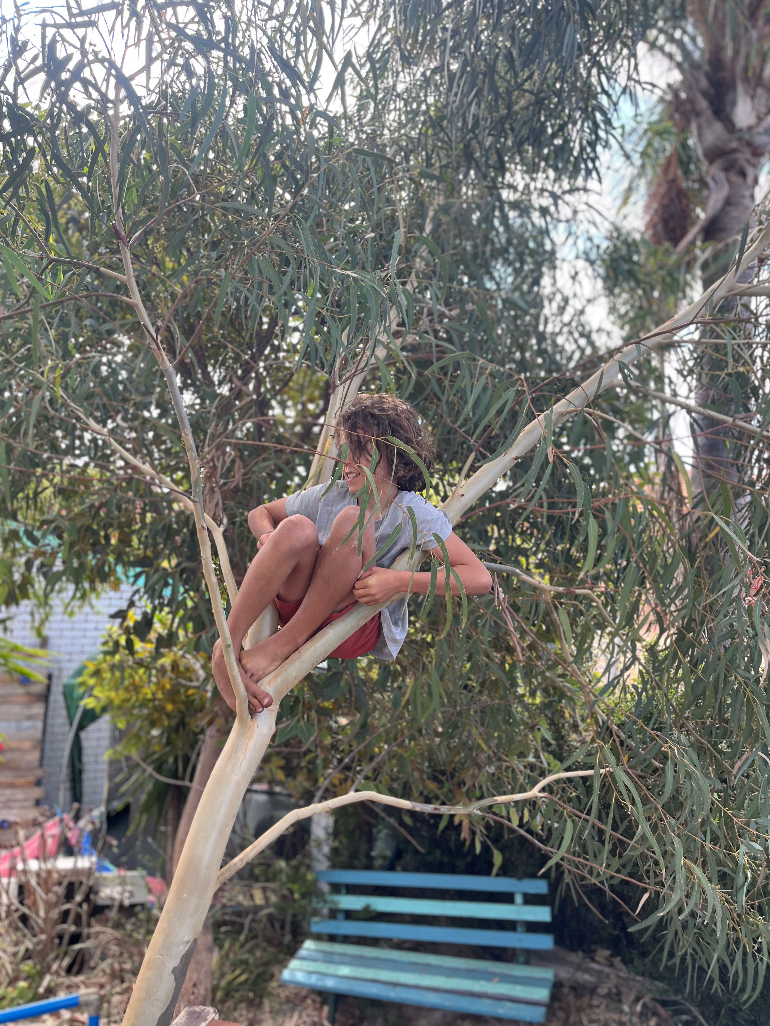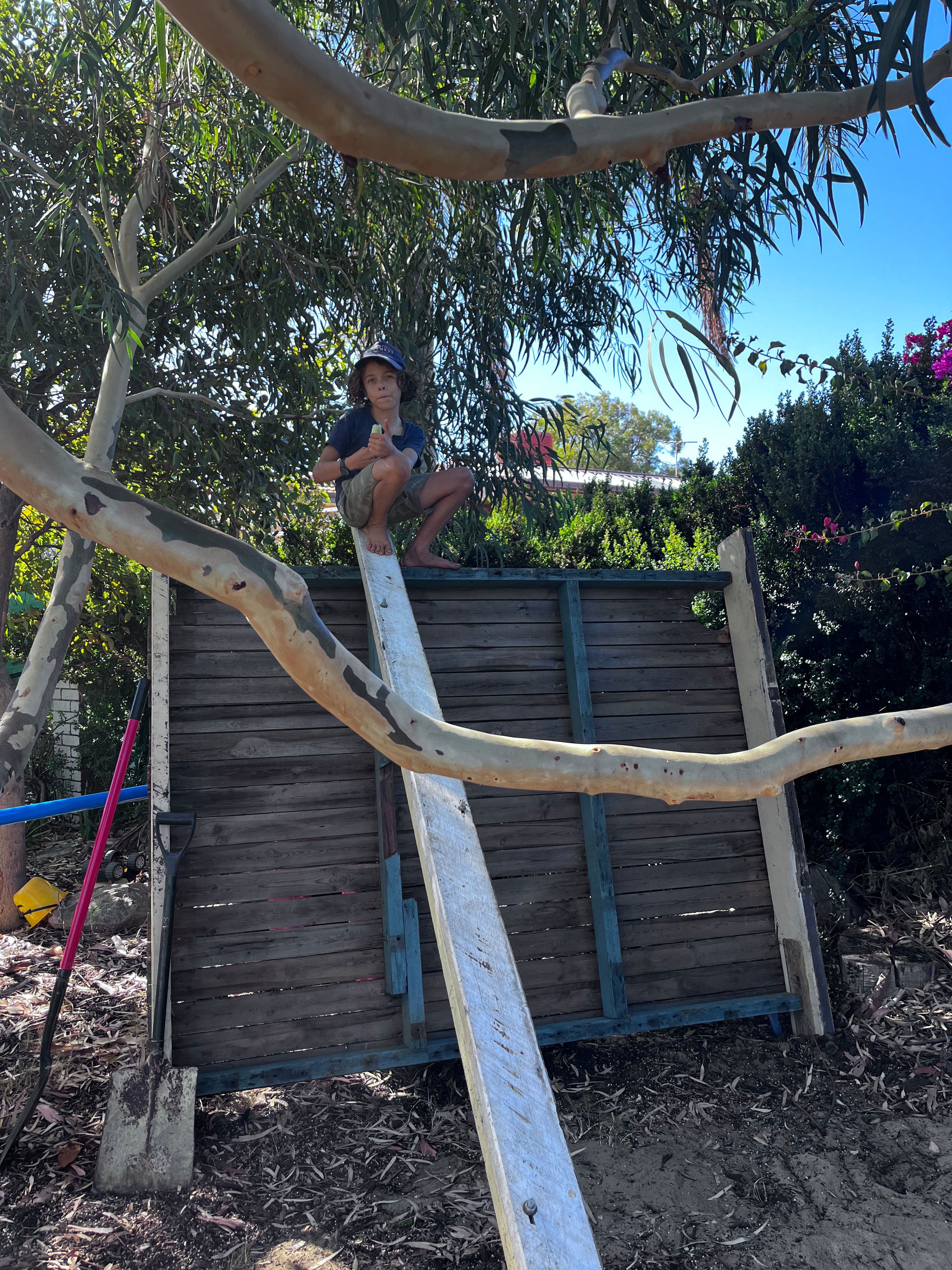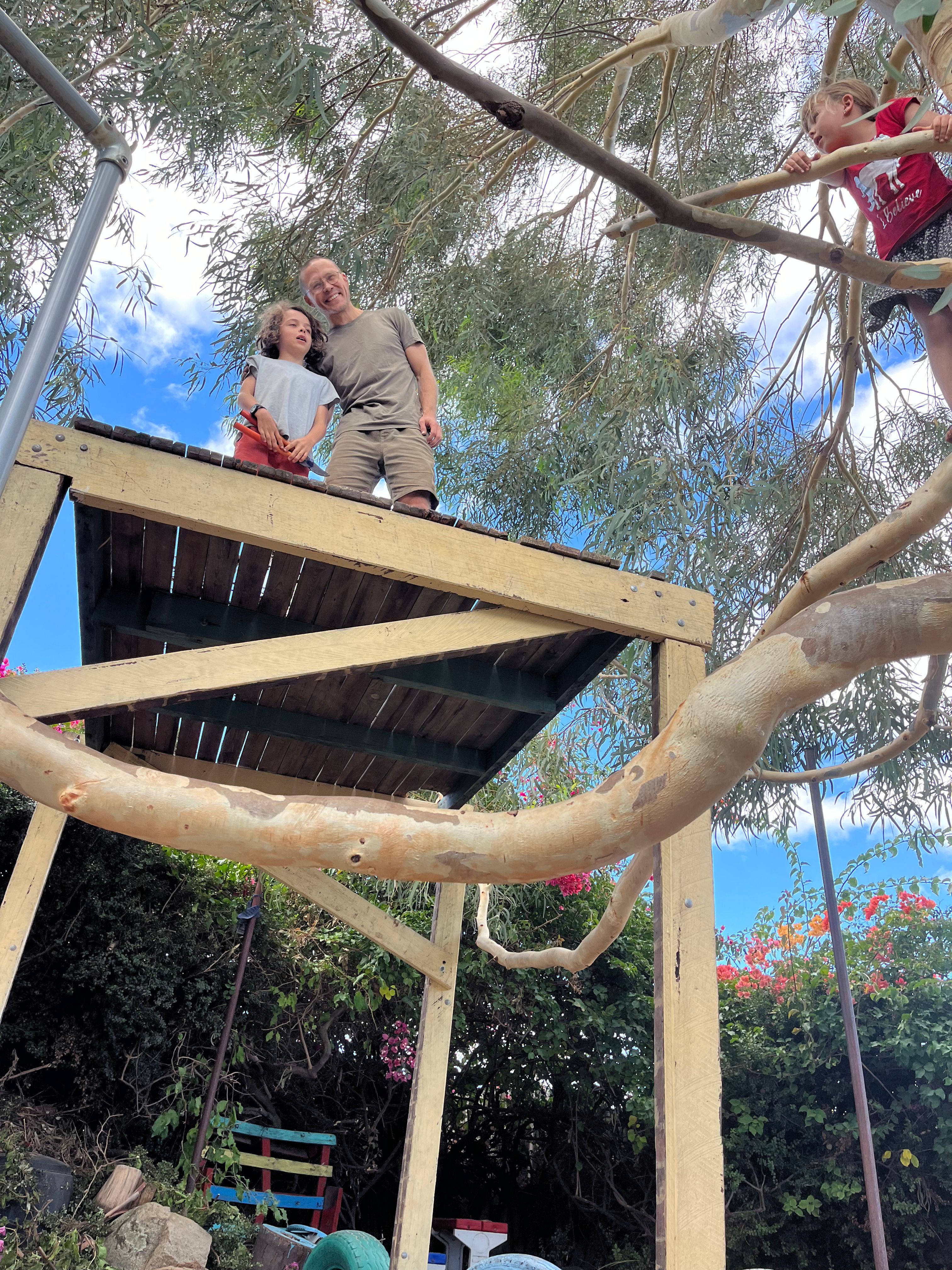 Meanwhile Adam and Gyān have been spending many hours in the garden working on a big project, building a treehouse together. Gyān loves building, and they’ve been learning step by step how to create a treehouse using recycled wood we already had.
