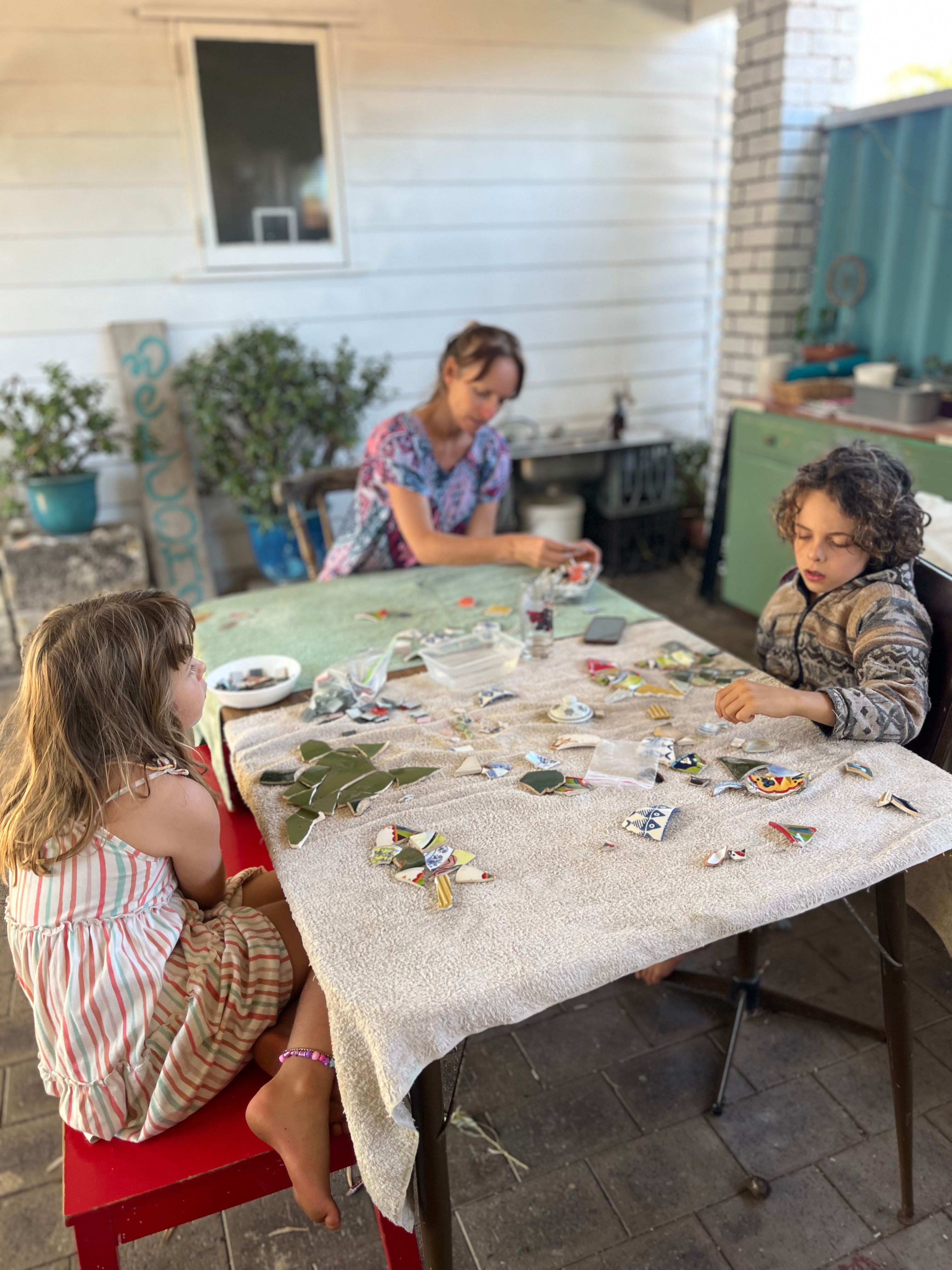 And together, the kids and I have been crafting a mosaic of the sea, an ocean of memories from our adventures in the beautiful waters of Thailand and beyond. We try our best to take it slow; one piece of tile, one breath, one piece of tile, one breath and with every new edge and every new grouted line, the big picture settles more and more in our awareness. It’s not always easy and sometimes the tile glue and grout flies everywhere 😃 but we try our best.
